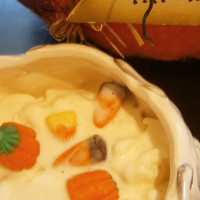 Ever since I was a child, I’ve loved mellocremes. You know what I’m talking about: that Halloween mix candy with little pumpkins and handfuls of candy corn. (Bonus points if you remember the variety that also had chocolate cats.) Granted, they’re terrible for you. Can you say straight sugar…